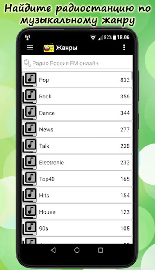 Radio stations are also grouped by music genre. Select the desired music genre.