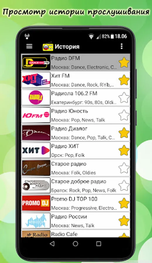 Within the history is your chronological list of the last 60 listened radio stations, which is automatically generated so that the radio stations are not repeated.