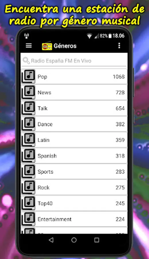 Radio stations are also grouped by music genre. Select the desired music genre.