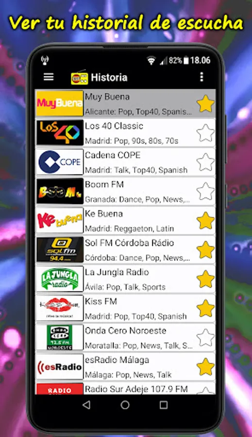 Within the history is your chronological list of the last 60 listened radio stations, which is automatically generated so that the radio stations are not repeated.