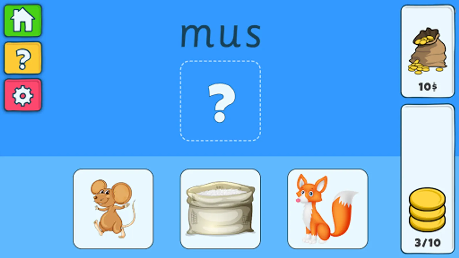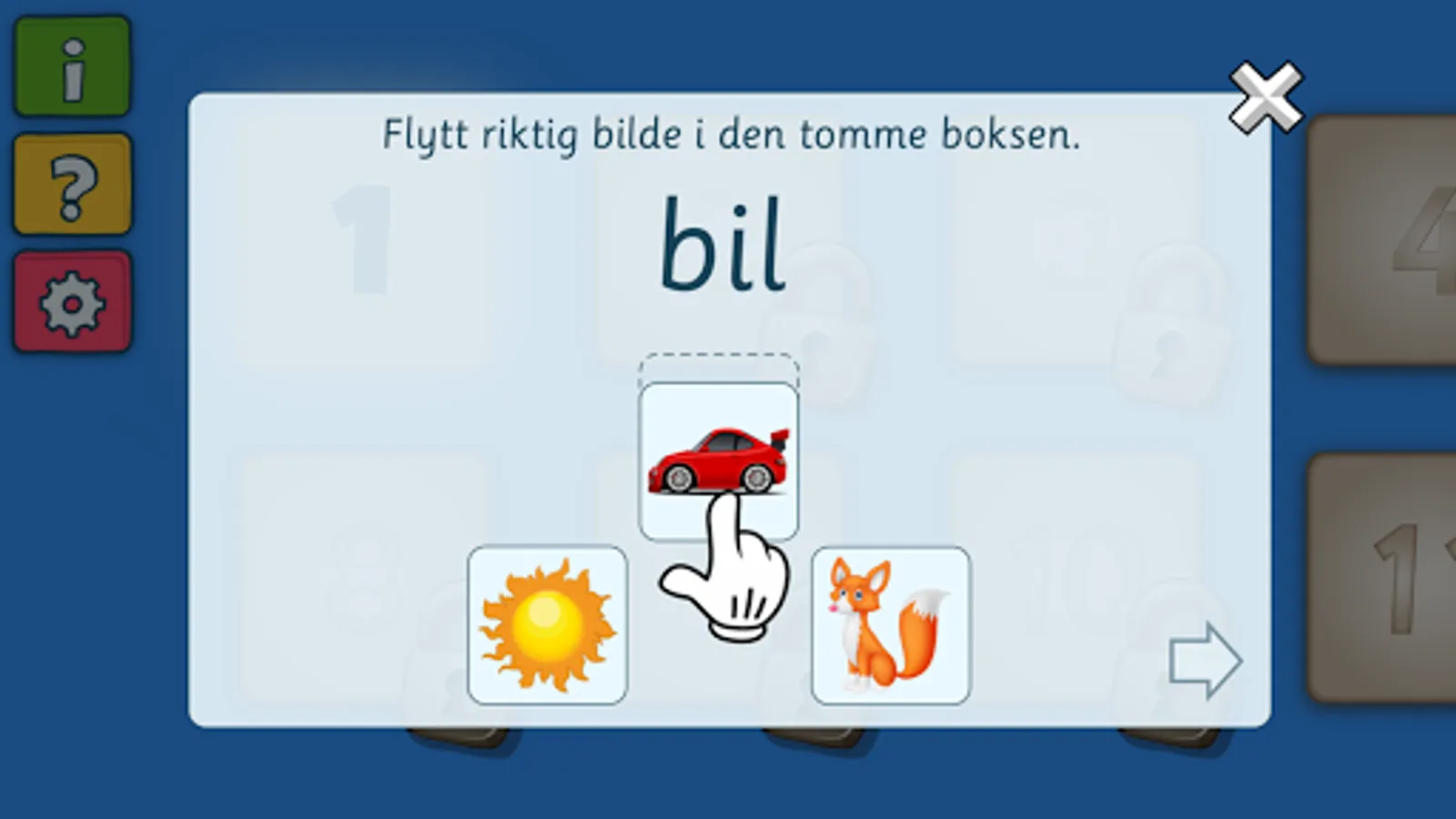 In "Småord" you should read a word and find the picture that matches the word. Very nice app for the first reading training and reading comprehension.
