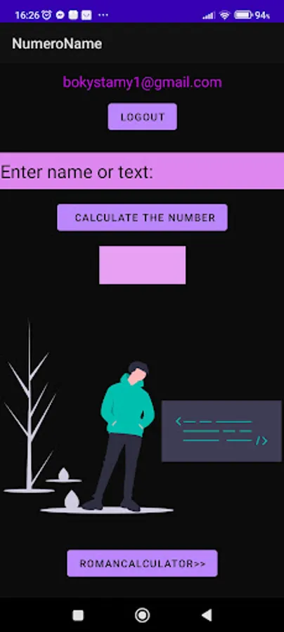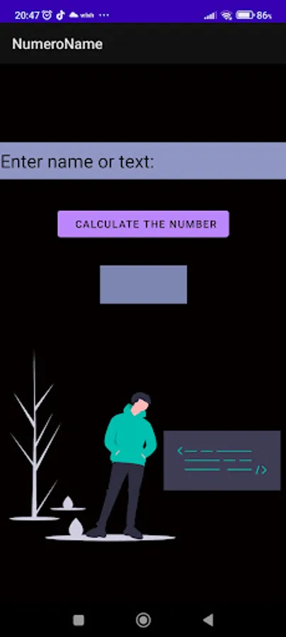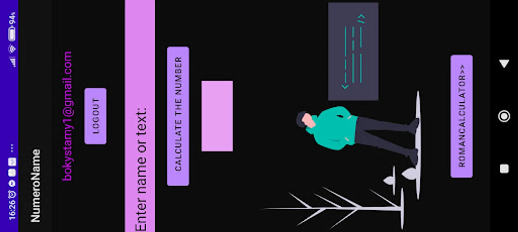 NumeroName je jedinstvena i inovativna aplikacija koja vam pomaže da izračunate numeričku vrednost vašeg imena, prezimena, reči ili fraze. Aplikacija počinje sa stranicom za registraciju gde morate uneti vašu e-mail adresu i lozinku, a možete se odmah prijaviti bez potvrde e-mailom, jer aplikacija koristi prijavu u Firebase-u.