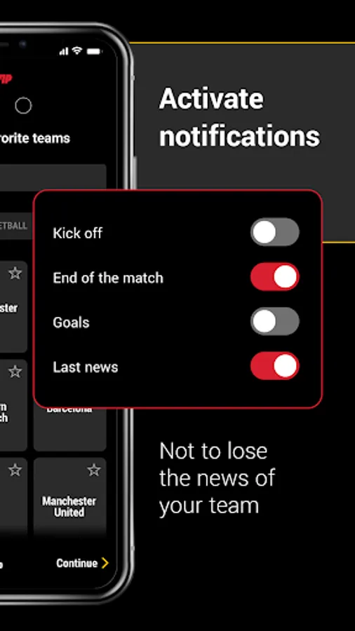 We also offer you an ideal second screen experience so you won't miss any detail while watching your favorite team's games from your mobile phone.