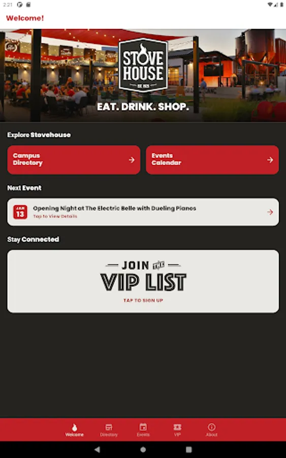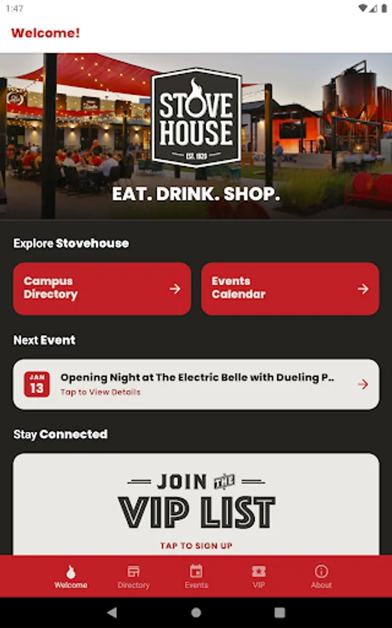 The Stovehouse app gives users unique access to all things happening at Huntsville’s premier destination for eats, drinks, shopping, and leisure. Navigate the Stovehouse campus with ease and get VIP updates on our live music, campus events & business specials.
