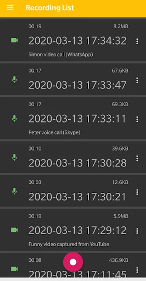 • All other screen recorders can't record VoIP calls because Android allows only one app to use the microphone, just as said above. This app can record VoIP calls perfectly.