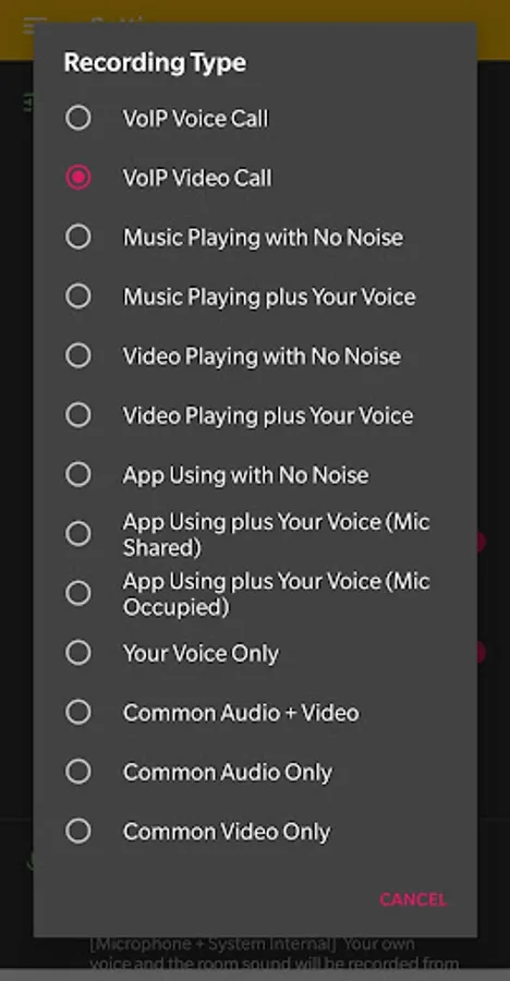When a VoIP call comes, the VoIP app doesn't notify this app, so this app can't start recording automatically because it doesn't know the event. You should tap the record button on the notification or on the float view to start recording. When the call is ended, this app doesn't know the event either, so you should tap the stop button to stop recording. During recording you can pause and resume recording if you want.