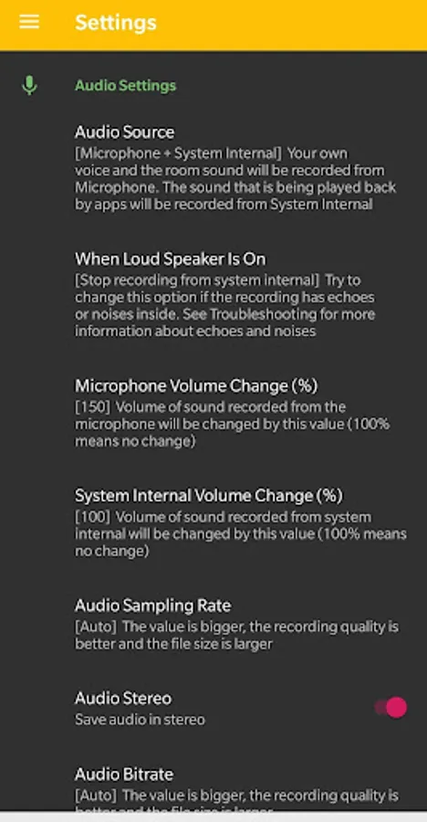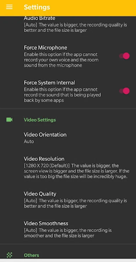• Some other screen recorders can make internal recordings, but they only work on a part of phones, and they can't record audio from many apps like music streaming apps and video streaming apps etc. If you use this app to make screen recordings you can record audio on all phones from all apps.