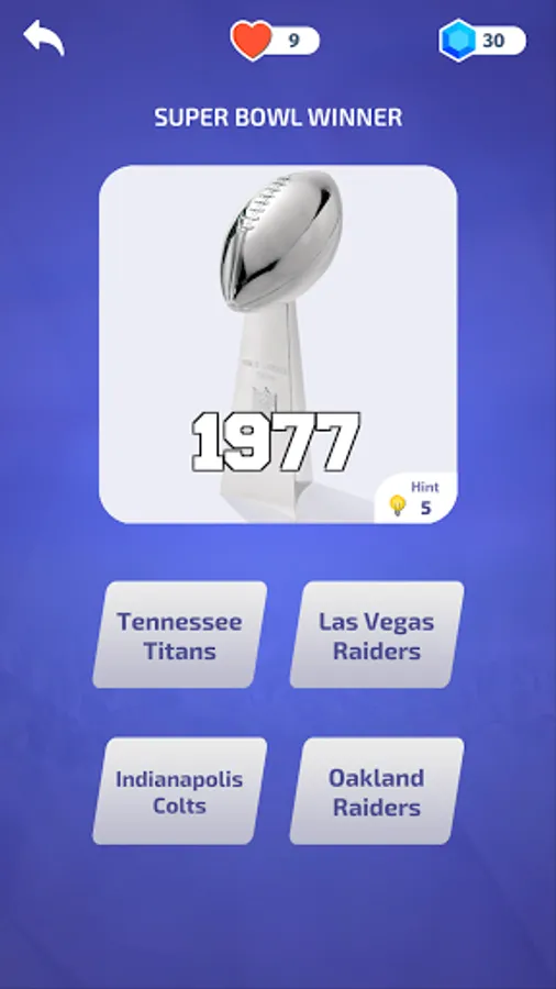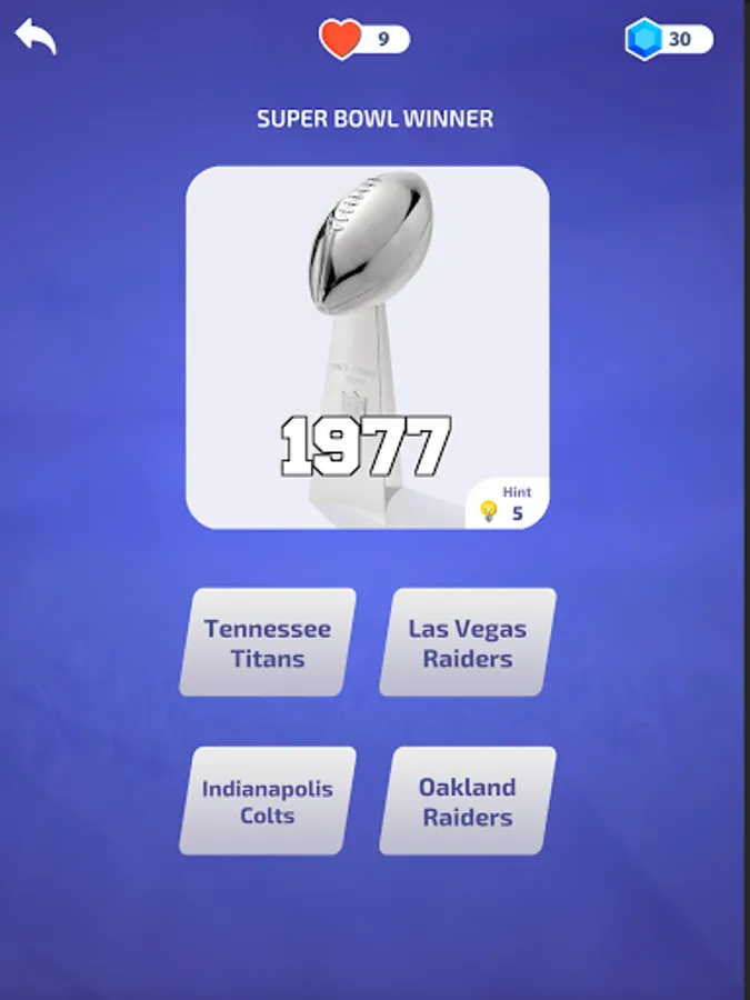 The game features questions about the National Football League (NFL), the American Football League (AFL), and the Super Bowl!
