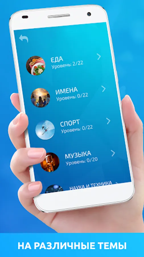 With this game you will develop, increase vocabulary, improve spelling, and of course relax. The game has 10 categories on different topics: Animals, Plants, Food, Sports, Science, Music, Movies, Cities and countries. Choose the category of words you like!