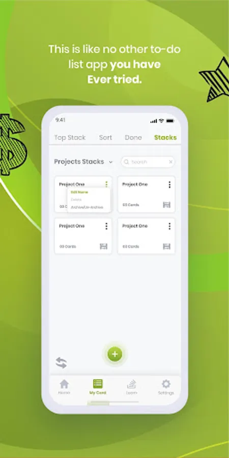 Add a name, time needed to complete the task, and notes for each task into our daily task management organization app. On the card task board, tap the play button within the app and start completing the task. Alternatively rotate each digital card and detailed notes about that digital card. Use the digital cards as project management & time management tool to plan, track and measure your and the productivity of your team.