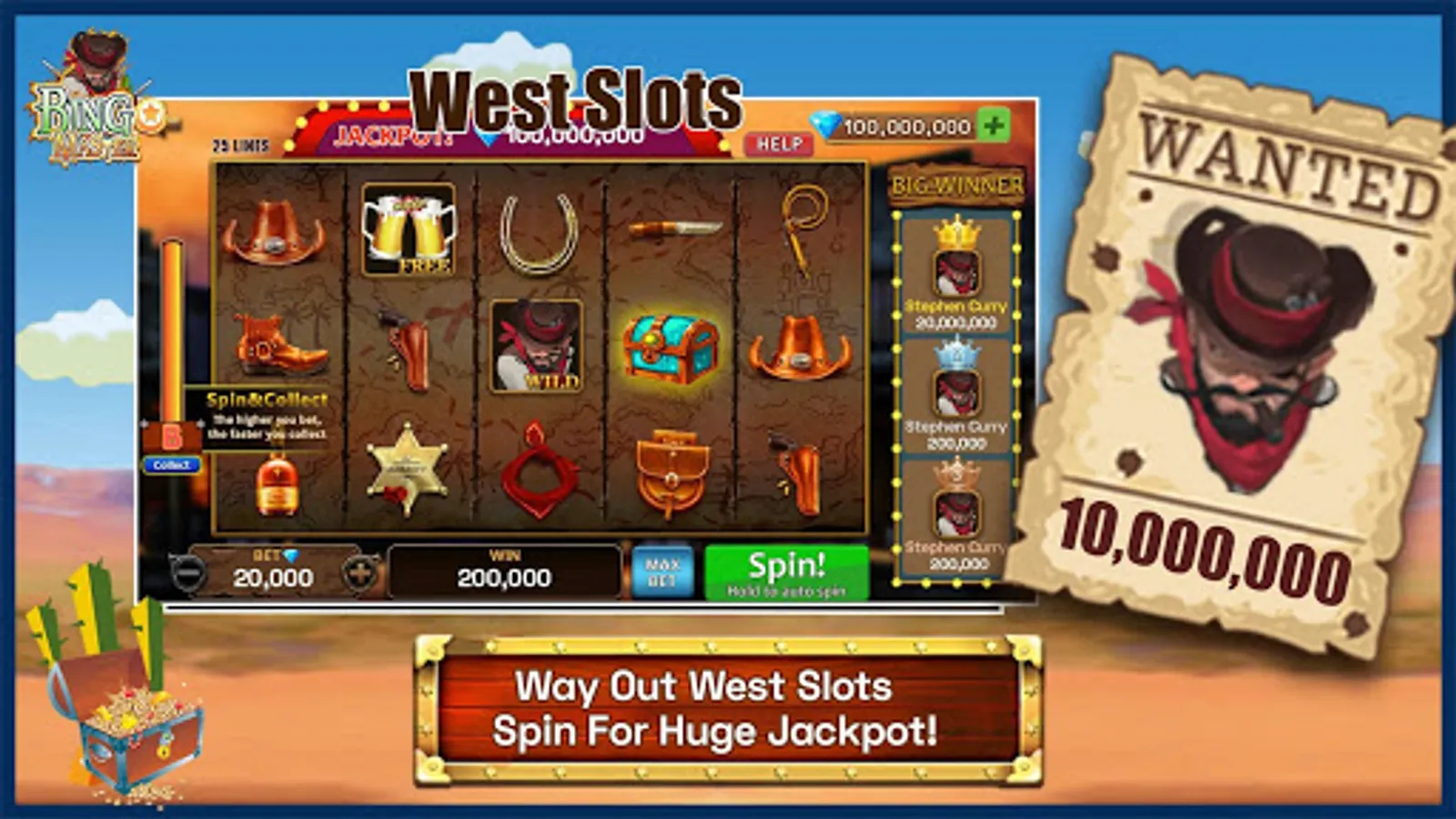 # Wild West slots.Way out west bingo slots game, extra free spin and bonus game, to win huge JACKPOT.