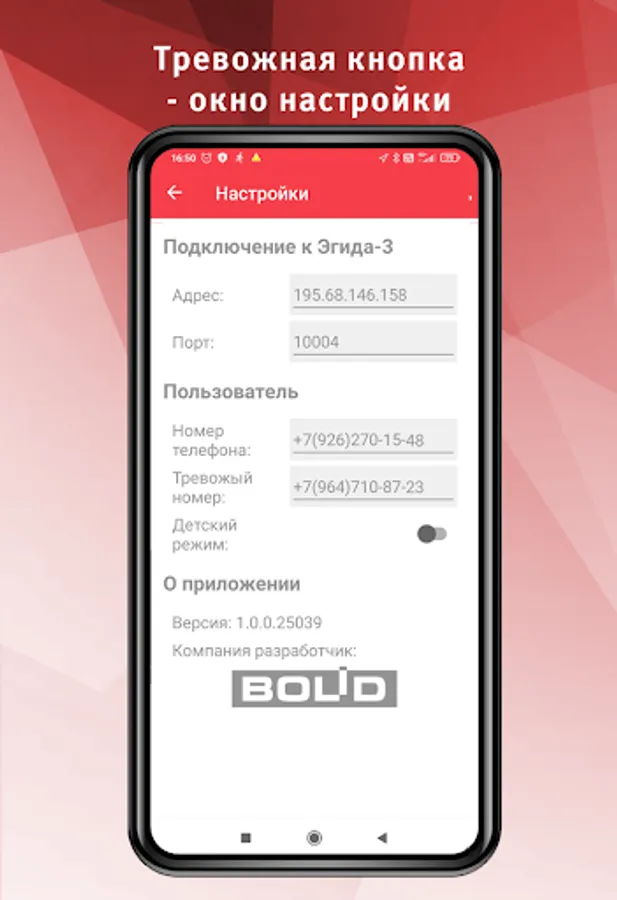 The Panic Button mobile application is used to transmit the alarm signal from the subscriber's mobile device to the AWP of the ARC Aegida-3, as well as to transmit the geographic coordinates of the subscriber's location at the time of sending the signal