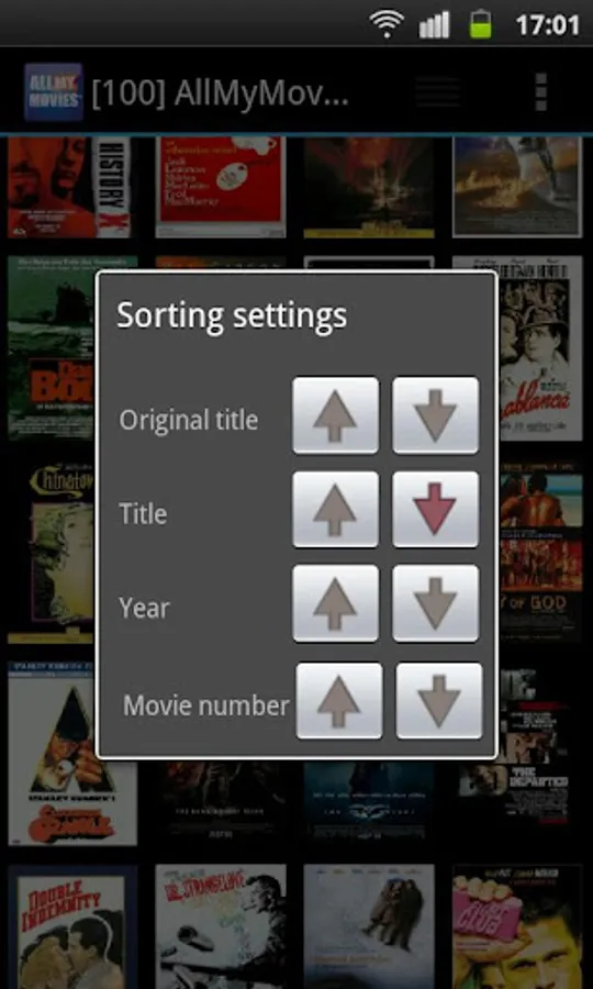 - Sort your movie database by Title, Original title, Year or Movie Number