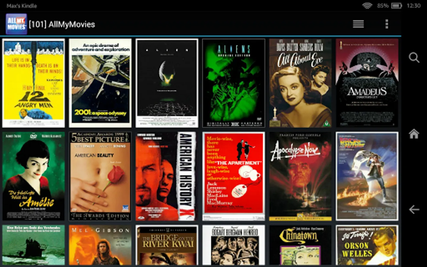 - Browse your movie collection as a title list or cover thumbnails