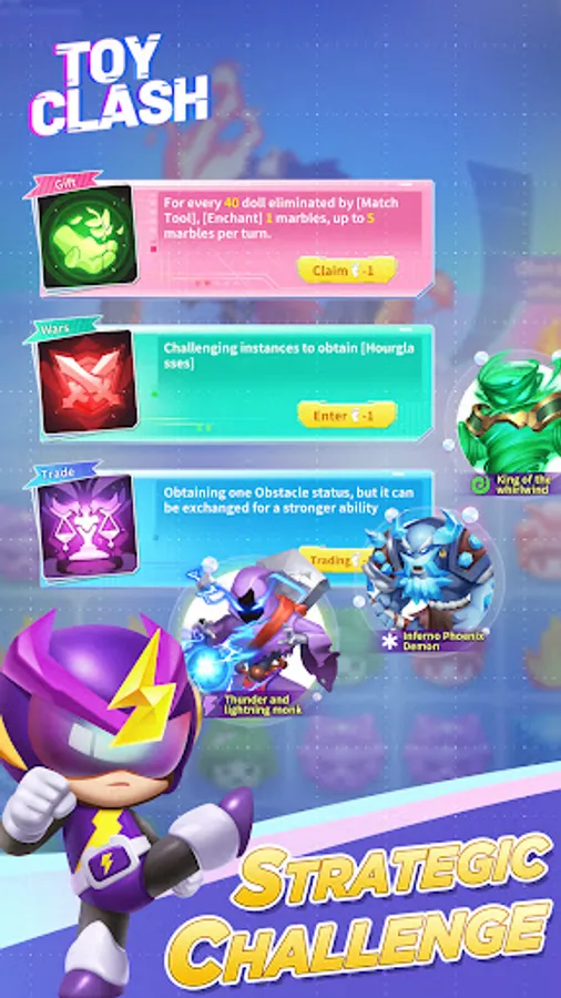 Super challenge, Elemental space, leisure park, Endless adventure... Whether it is a hardcore challenge full of wisdom and strategy, or a relaxing adventure, all in this "Toy Clash"!