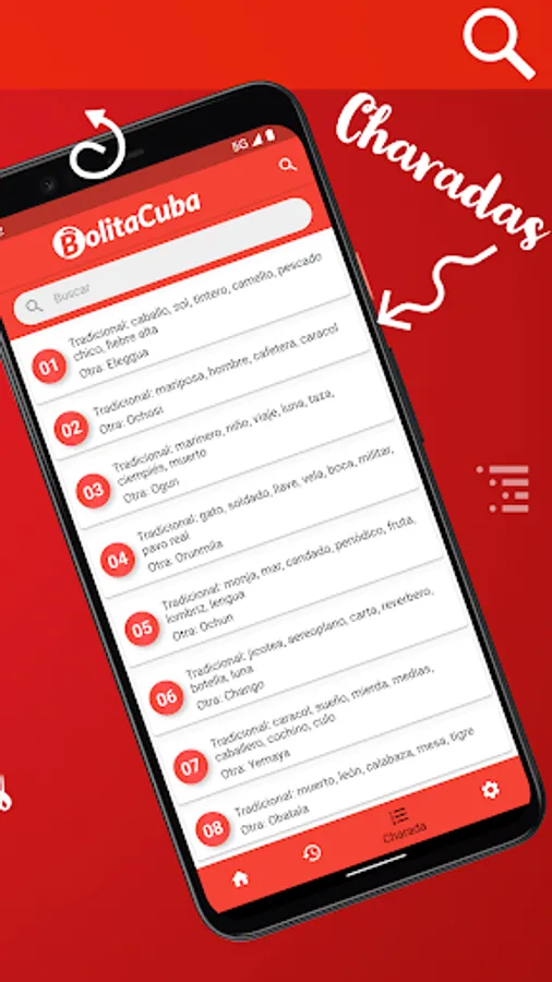 Users can consult the official Cuban, Chinese and Santeria charade. The charade is a guessing game that is based on the interpretation of coded words and phrases, and is very popular in Cuba. This could be useful for those interested in learning more about the charade and how it is played, or for those who wish to use the charade as a form of divination or decision-making. In short, this app would be a useful source of information and entertainment for those interested in the game of Cuban bolita and charade.