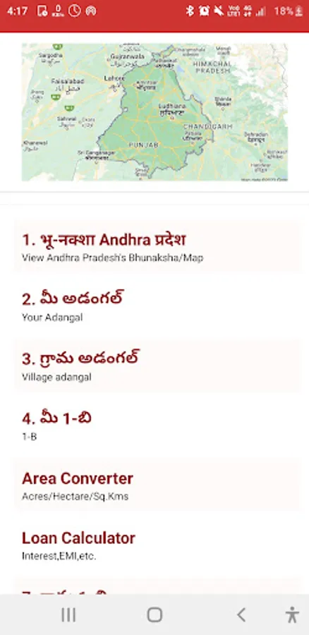 Key features - Find Meebhoomi Adangal, 1-B for both (your and village), village map of Andhra Pradesh and many others.