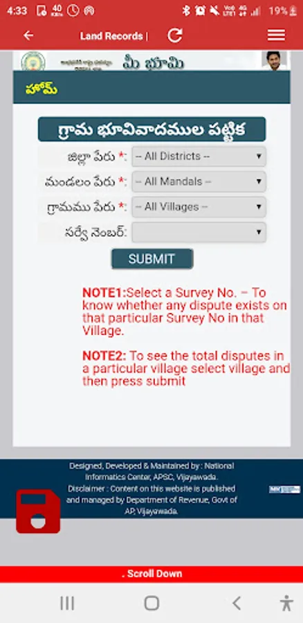 A faster way to find the Your Adangal, Village Adangal, your 1-B, Village 1-B and other land information of MeeBhoomi Andhra Pradesh. Beside that it also has some other features like Village map and related land information. After the see the record you can save those record as pdf with the help of print manager that is used here.