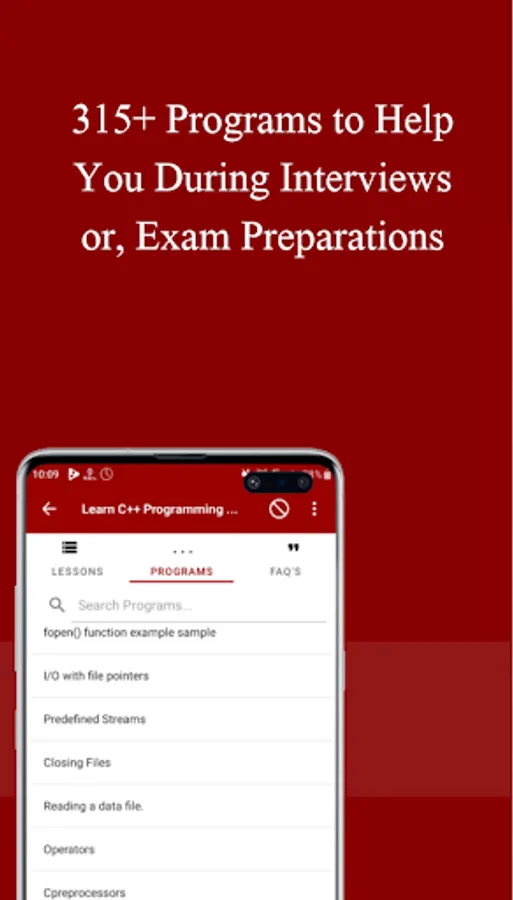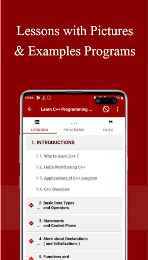 This App Provides you with Lessons [ With Pictures and Example Programs]