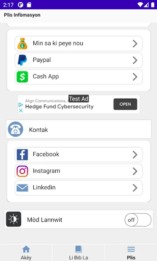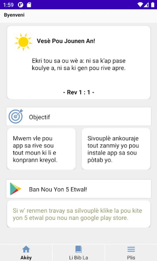 Bib Kreyol fully operates without your cellular data . It super light and fast in fact, it's only about 2 megabytes. Therefore, it will not take much room of your device storage. App sa vreman lejè, li pap pran espas nan telefon ou et li pa itilize intènèt.