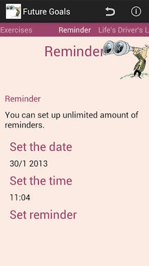 Future Goals is part of a series of apps made by Eva Johansson and recorded by Laurel Wakeman, who usually gets feedback on having a warm, lovely and relaxing voice.