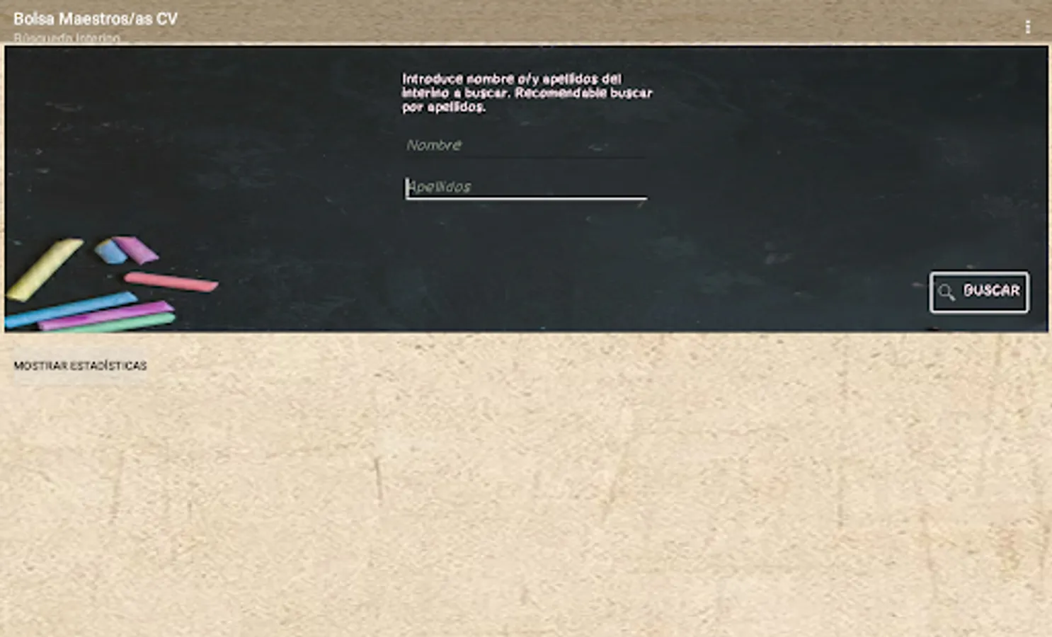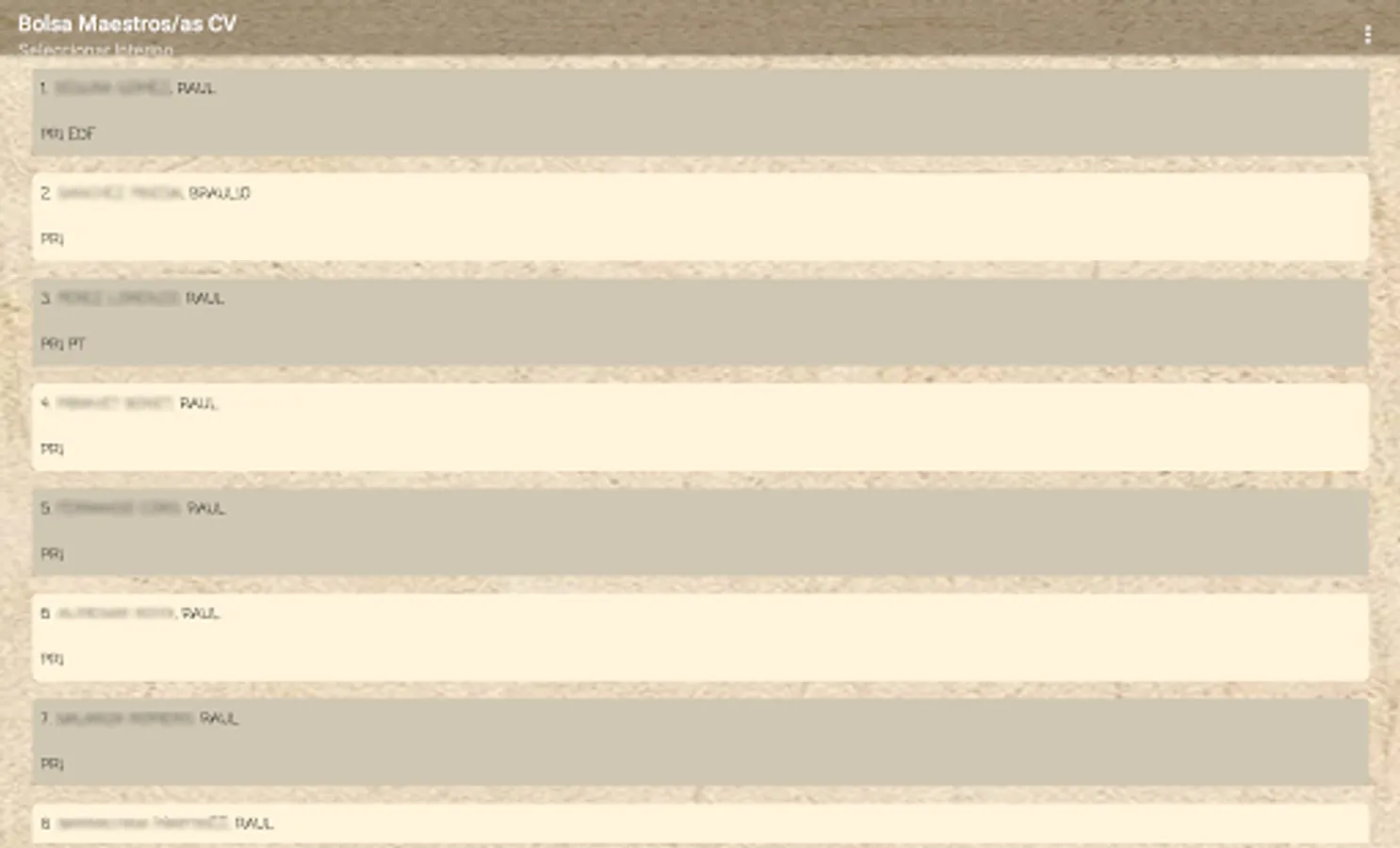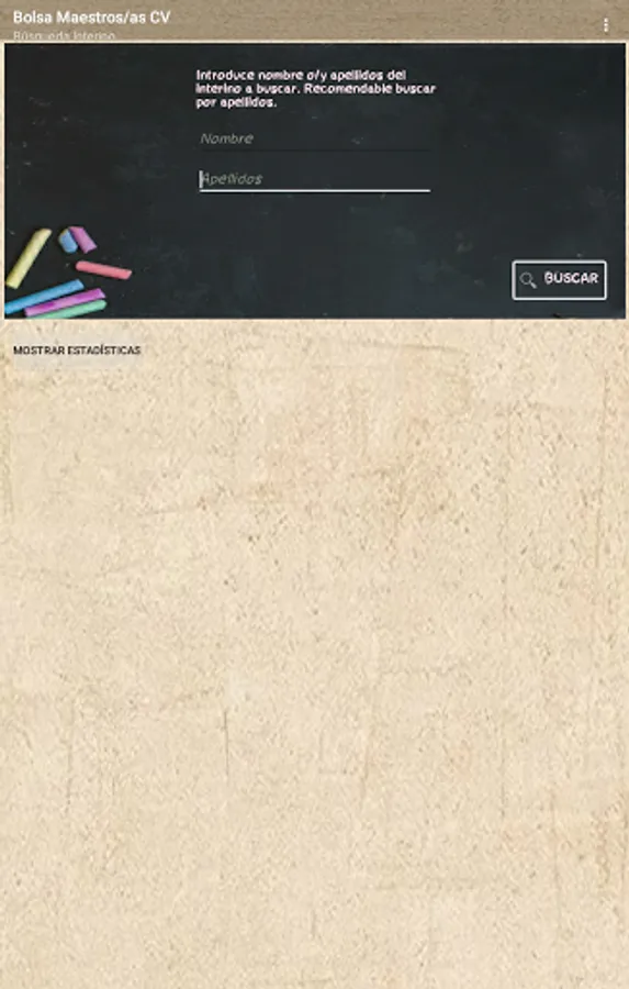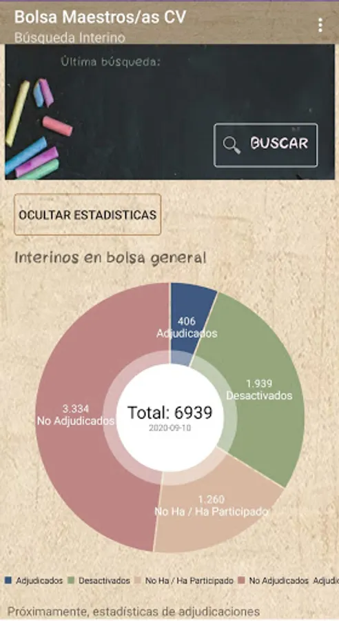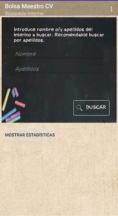 If you are an interim teacher in the Valencian Community, this application will allow you to know your real position in the stock market through data extraction according to the official lists published by the Conselleria, it is a private application without any connection with the Conselleria.