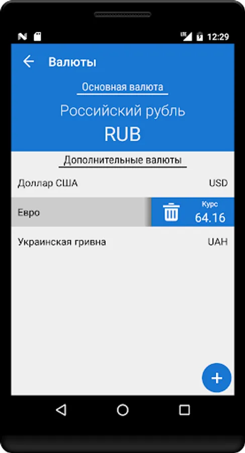 The first window after you install contains a selection of the main and additional currencies. It can keep track of the exchange rate relative to the main. After confirming the selection will open the main window.