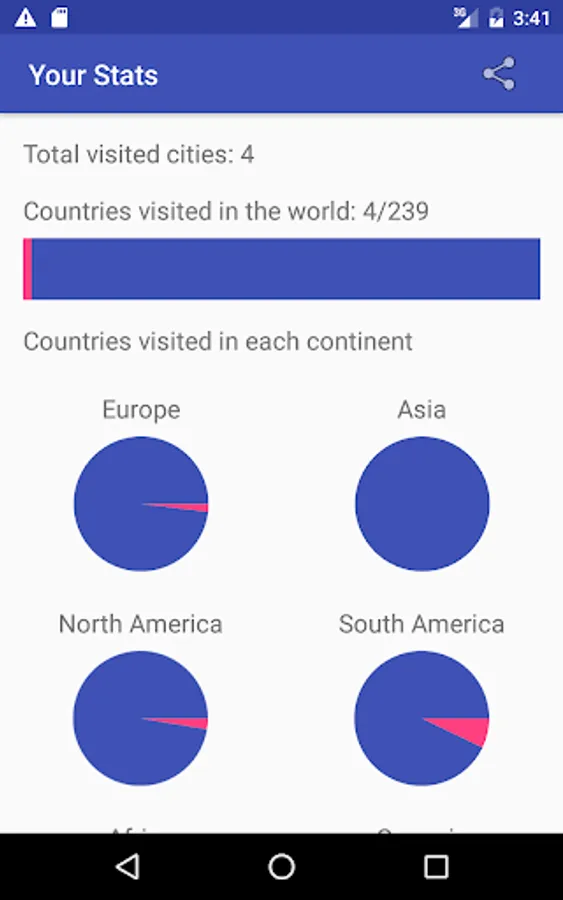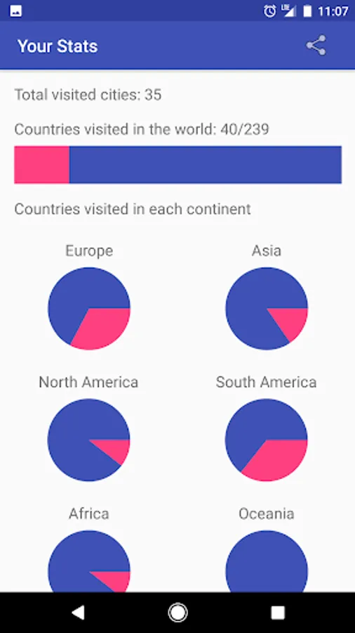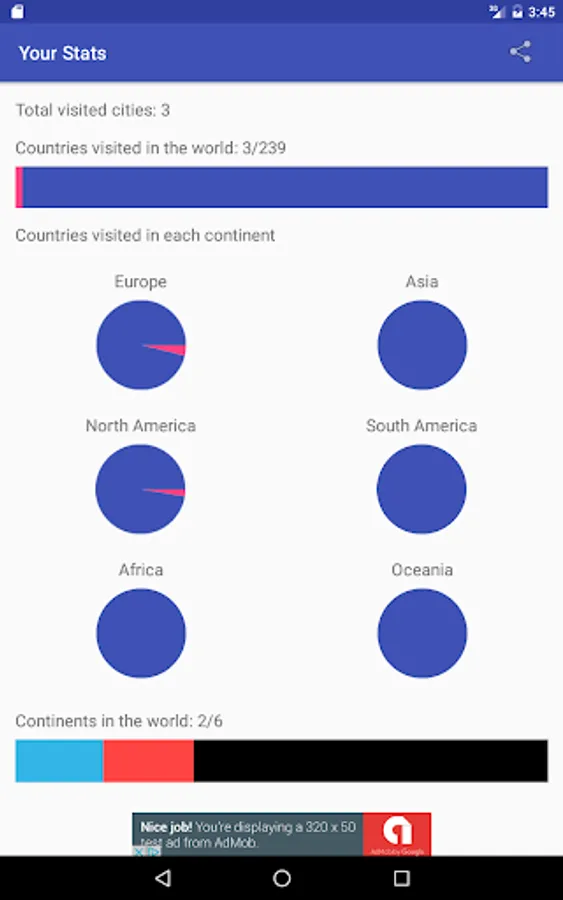 How many continents have you visited? Which percentage of countries in the whole world and in each continent?