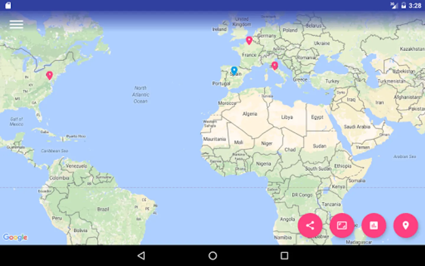 Look up cities in a huge database which includes every city with over 10.000 inhabitants. You can also pin any place you want in the map by tapping there for two seconds.
