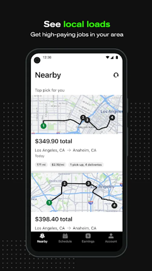 Getting local jobs has never been easier. You’ll get nearby loads dispatched directly to your phone with the payout amount included. If you want the job, just tap to accept.