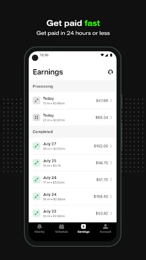 Maximize earnings with optimized routes and turn-by-turn directions, all without ever leaving the app.