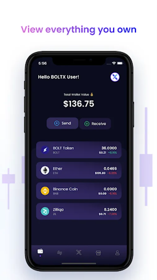 BoltX is more than just a crypto wallet – it is a secure, fun, and easy way to get started with the world of crypto. You can use BoltX to send, receive, and store Bitcoin and many other cryptocurrencies including Ethereum and NFTs.