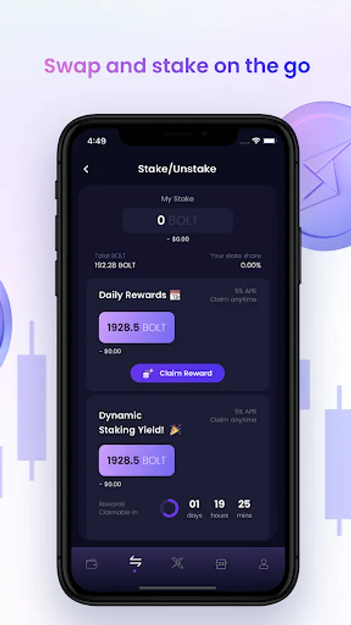 You can even use BoltX to earn interest on your crypto through our staking program, display your favourite NFT collectibles, and swap tokens (trading) through Uniswap and Zilswap directly in the BoltX wallet.