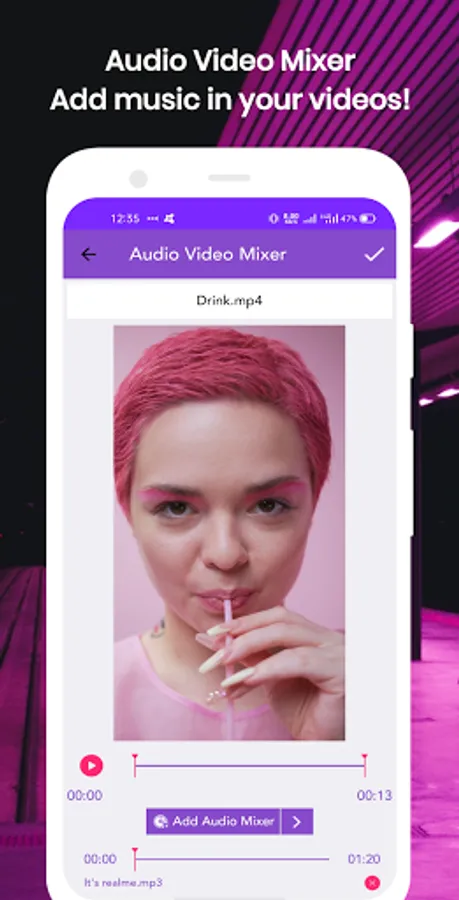 ◻️ Audio Video Mixer helps you to add music or any sound in your video.
