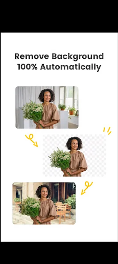 Remove background from your photos and change it easily. The application allows you to edit your photos using the tools available in the application, such as background removal, background change, image editing, and adding effects. You can also upload your own photos to the app and edit them using the tools provided. You can also save the edited photos and share them with others.