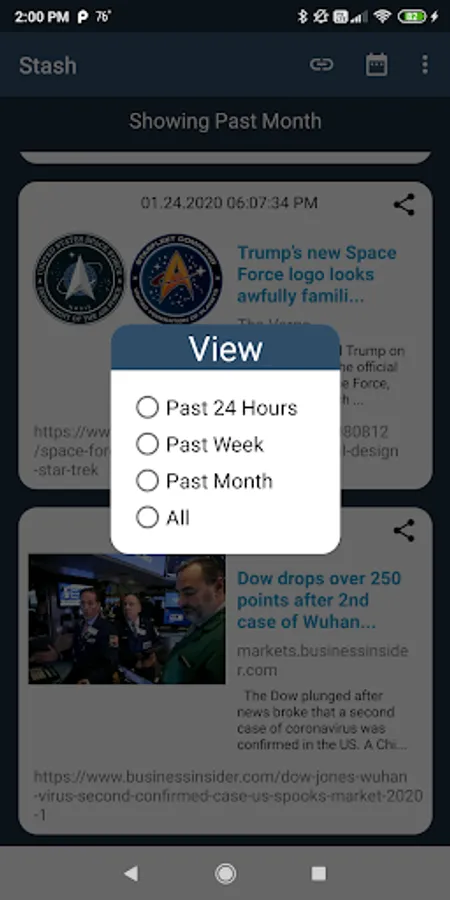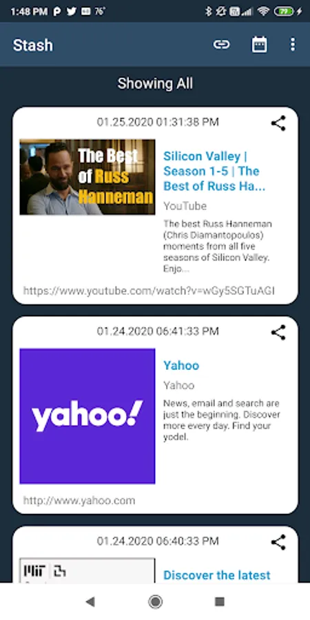 Stash your favorite links social media posts and more in Stash. Have you seen an interesting post on social media that you would like view later? Then share it to Stash. Has an interesting news article come up in your new feed? Share it to Stash. Everybody knows that links and posts can be hard to find later when are looking them. We do not always have time to read carefully through a news article. With Stash, you can save it for later. Stash works well with most browsers and applications on your Android device. Anytime a link can be shared, Stash will save it display it in a list making it easy to find.