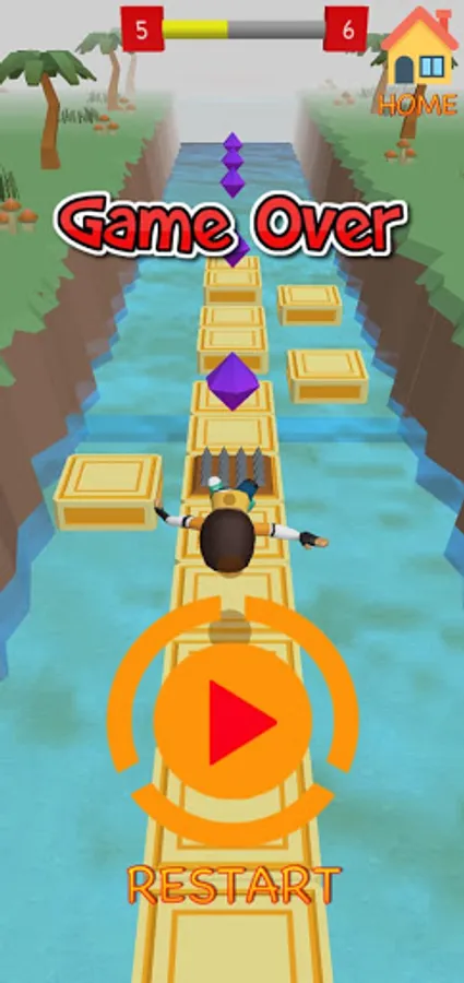 The speed of player increases with respect to level and distance as well as new hurdles keep on coming in each level.