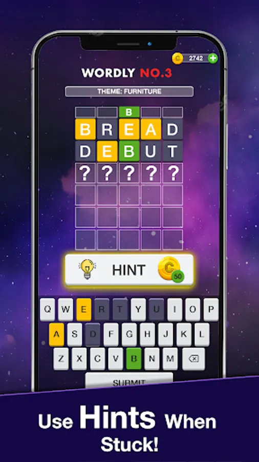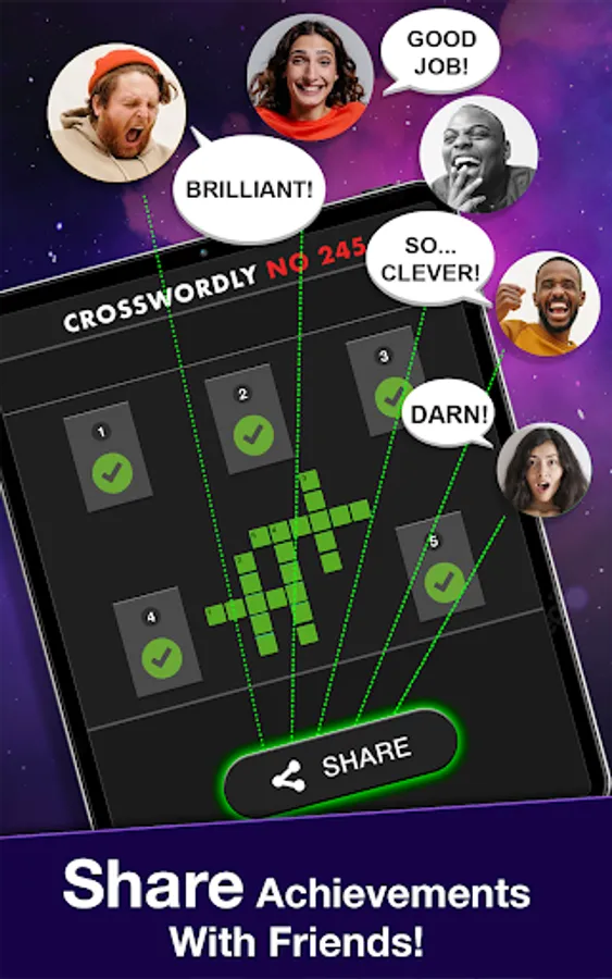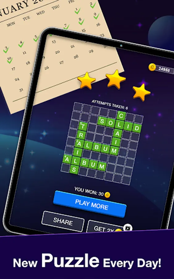 Solve the puzzle and share your progress with friends, win collectable coins for each wordly you solve and show your friends your statistics!