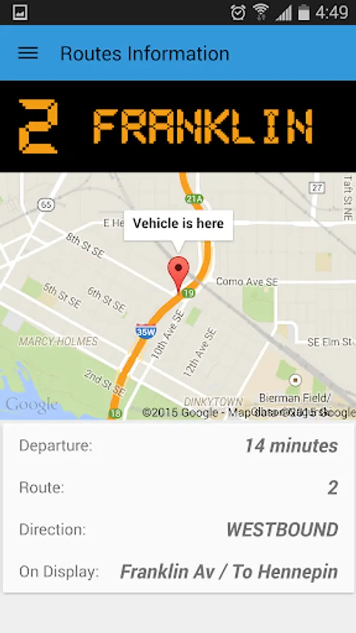 Tired of waiting for the bus or light rail? This app will not only tell you how far away it is, but also show you the exact location of the vehicle on the map (if available)! Then you'll know exactly where the bus or the train is.