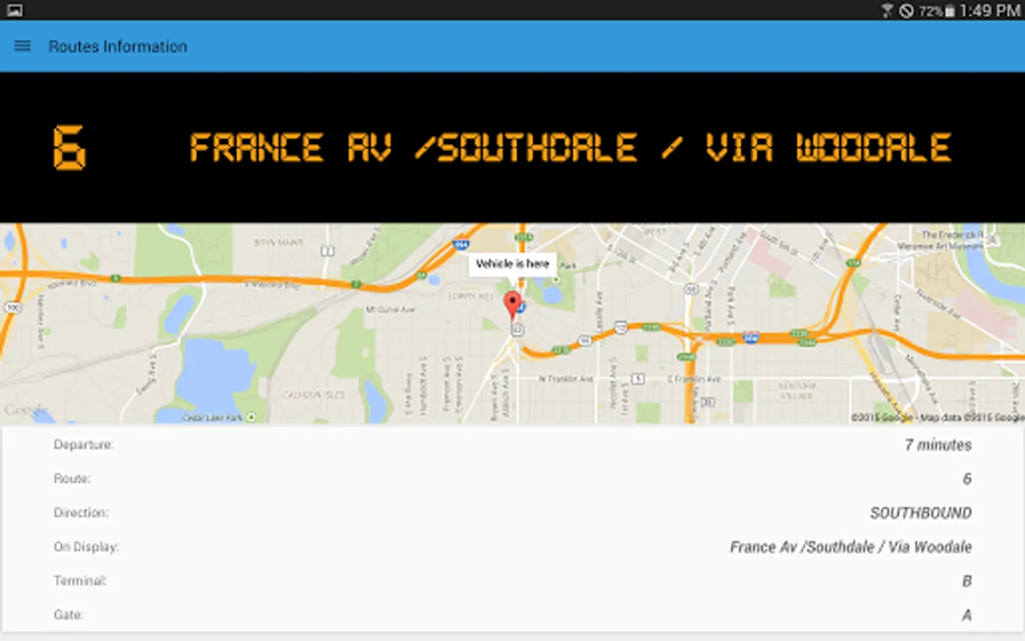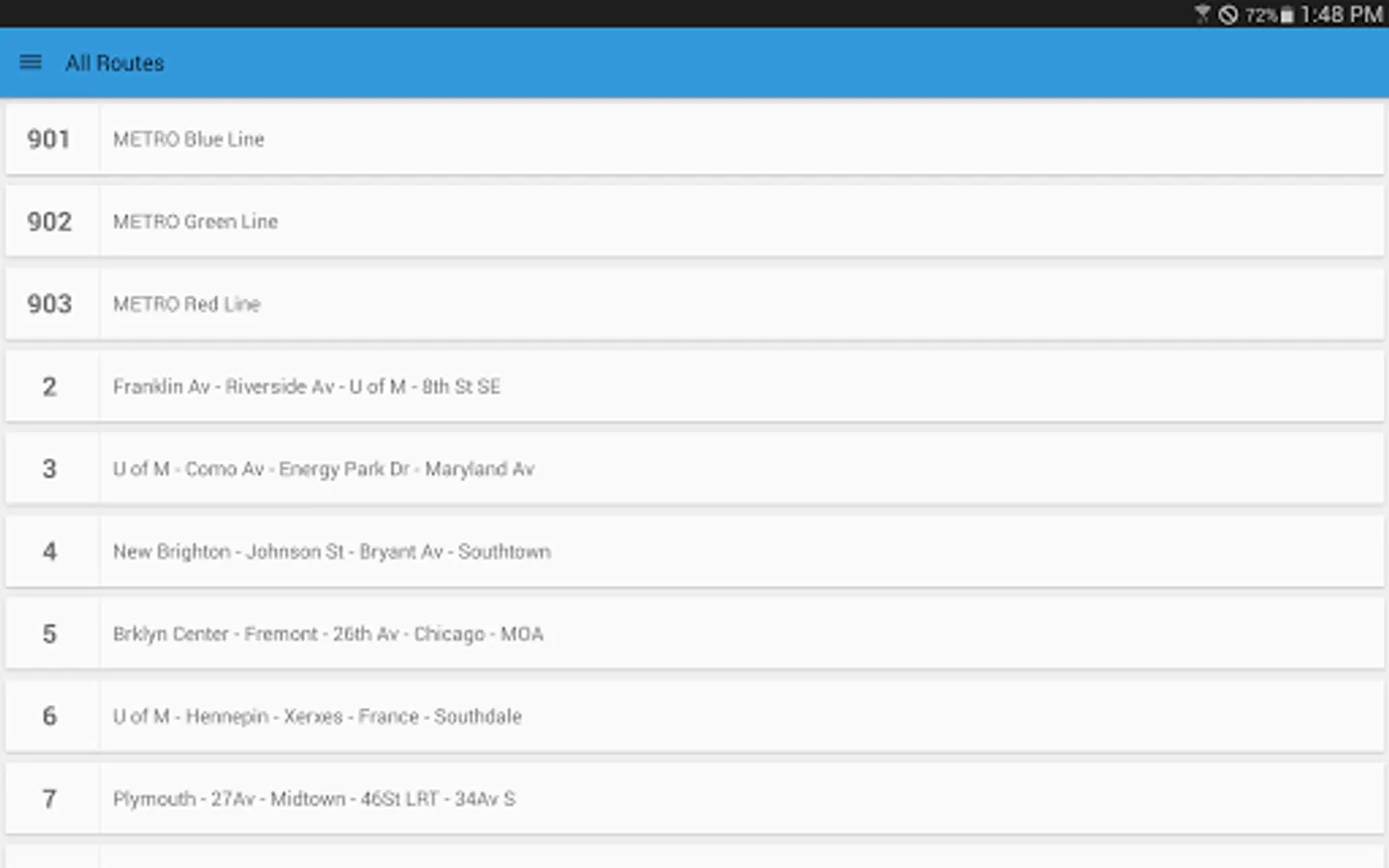 With Twin Cities Metro Transit app, you can see all the routes operated by Metro Transit, including its partners (like Minnesota Valley Transit Authority - MVTA, Northstar, etc). The information is accurate and refreshed every 30 seconds.