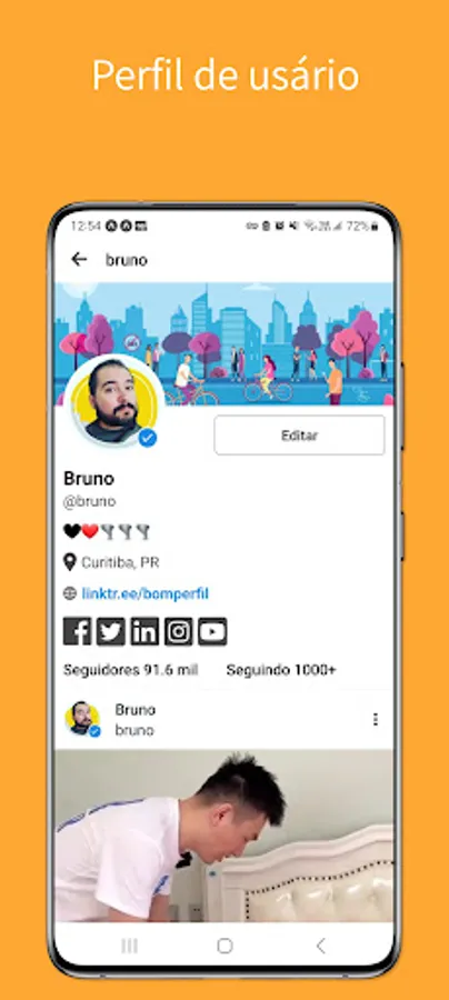 With more than 200,000 people registered, it's the perfect place for you to create your profile, connect with friends, share videos, links, texts and images, in addition to exploring interests by searching for users and hashtags.