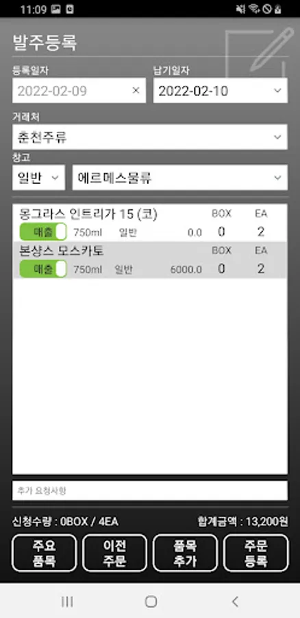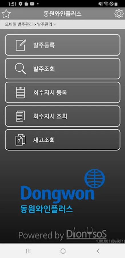 Dongwon Wine Plus liquor ordering application provided to customers using the Dionysos system serviced by Bona Camp Co., Ltd.