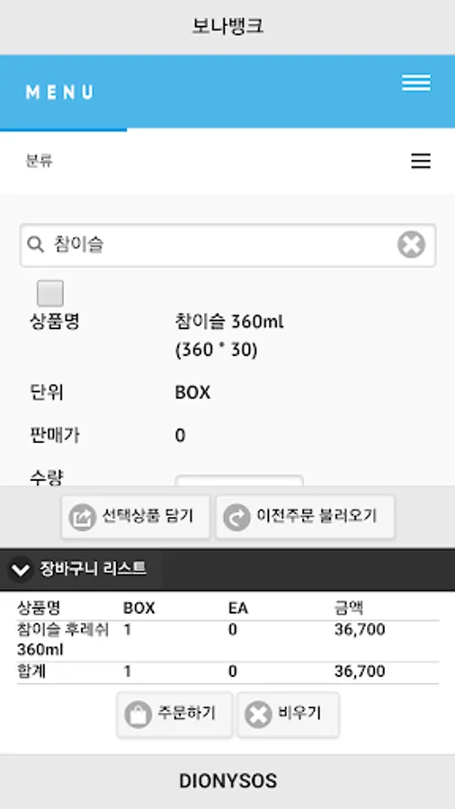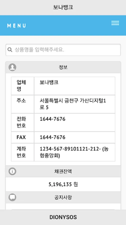 It is a liquor order application provided to customers using the Dionysos system serviced by Bona Bank Co., Ltd.