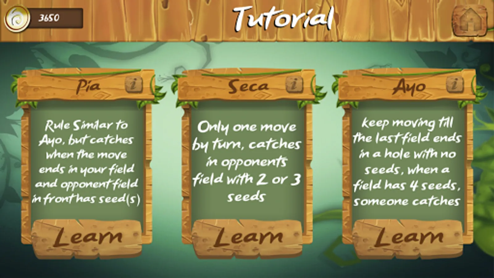 We have tutorial of the 3 Game Rules already on the game: Ayo (Nigeria) Seca/Awale/Oware (Played across the world) and pia (played in Cape Verde and other regions in Africa).