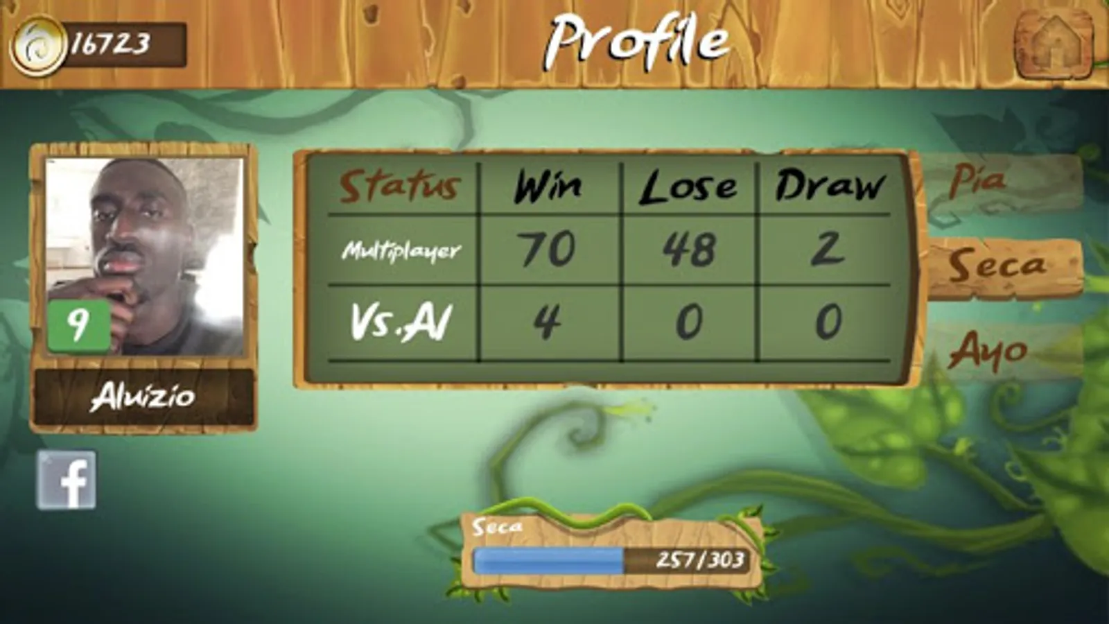 In Ayo Game you can challenge your friends to a multiplayer match no matter where you both are, and brag about your position on the ranking with other world class players.