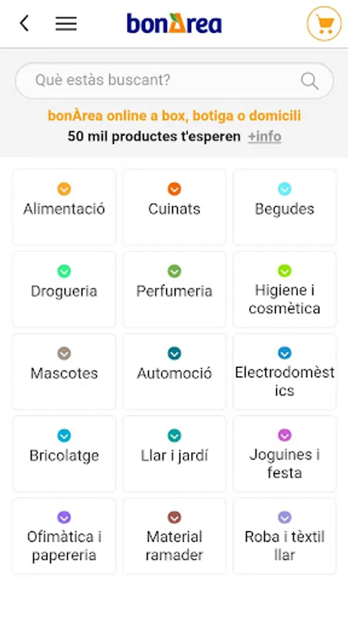 Shop online with your mobile or tablet. You can pick up the order at a bonÀrea store, Box (refrigerated lockers where you load the order directly to your vehicle) or receive the purchase at home.