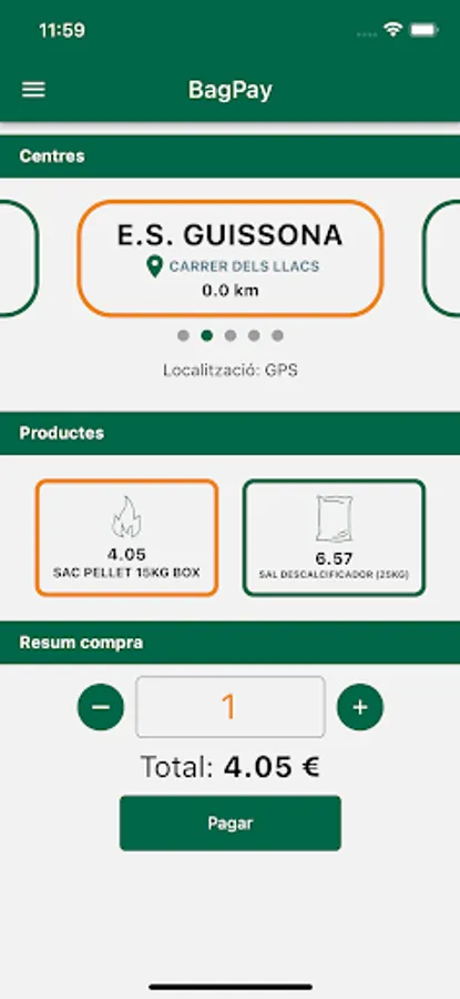 The first time you open the application, you will need to register in order to identify yourself and place orders. Inside, by default it will try to locate the nearest center where you are (although you can place orders at other centers remotely). Just select the product and quantity to place the order.
