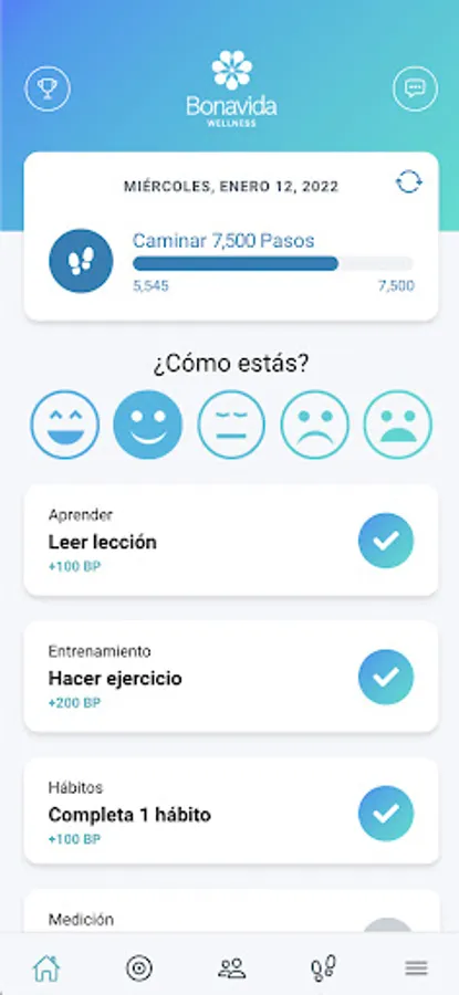 * Social Wellbeing: Through the Community section, employees share their achievements in the different areas of wellbeing. They also compete with their co-workers to see who walks the most, both individually and in teams. They also feel constantly motivated by the accumulation of points and the variety of challenges and attractive activities that are included in the Bonavida App.