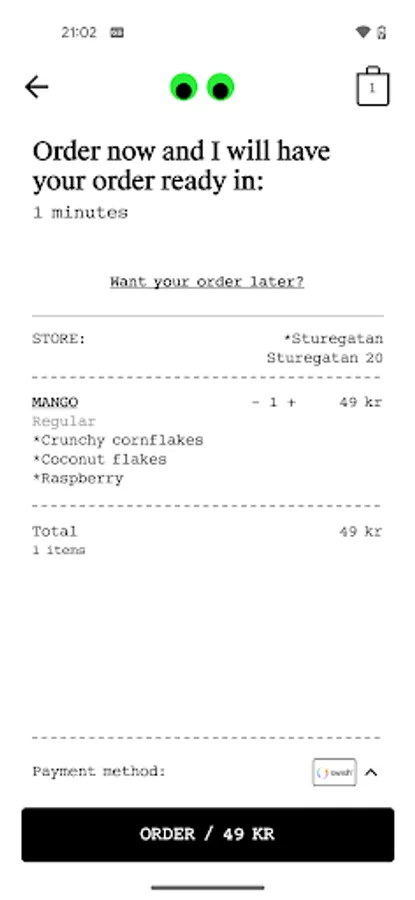 2. Place your order and if you don't want to pick it up right away you can choose a time for later, when it suits you.
