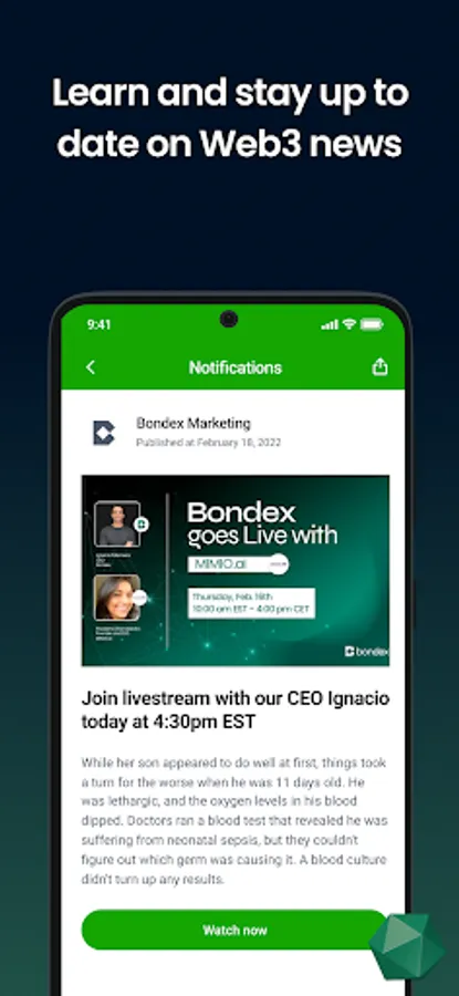 - Connect, engage and earn Bond points to increase your visibility on your network, premium access and future benefits